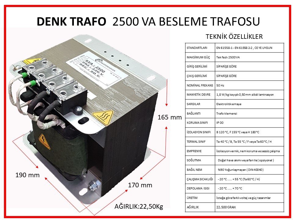 2500VA Tek Faz Güç Trafosu